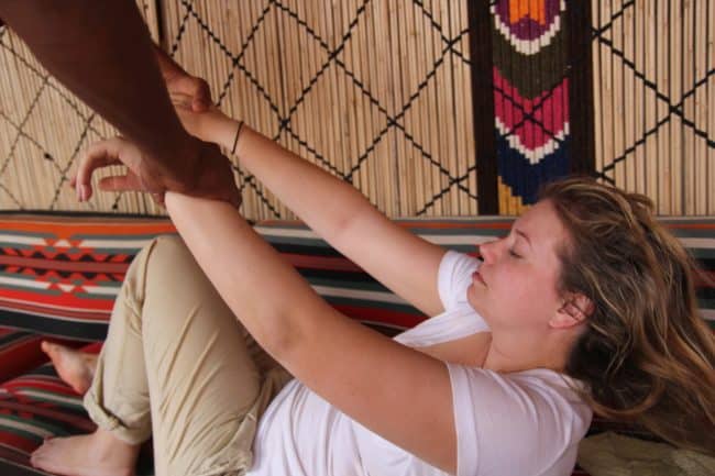 A minute later a swift Bedouin boy, one of the camel interns, comes running up to me and tries to pull me to my feet. Not happening. I try to stand and fall right back over.